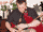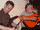 Mikie trying out Gaby's fabled Leo Rowsome Chanter.